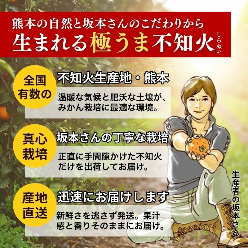 他の画像を見る 【限定100セット】熊本県産 不知火(しらぬい) 秀品 5kg(約12~16玉入り) 送料込み 産地直送品 常温 2セットで1000円OFF ¥ 5,980 税込 販売を終了しました。 詳細を見る お気に入りに登録する