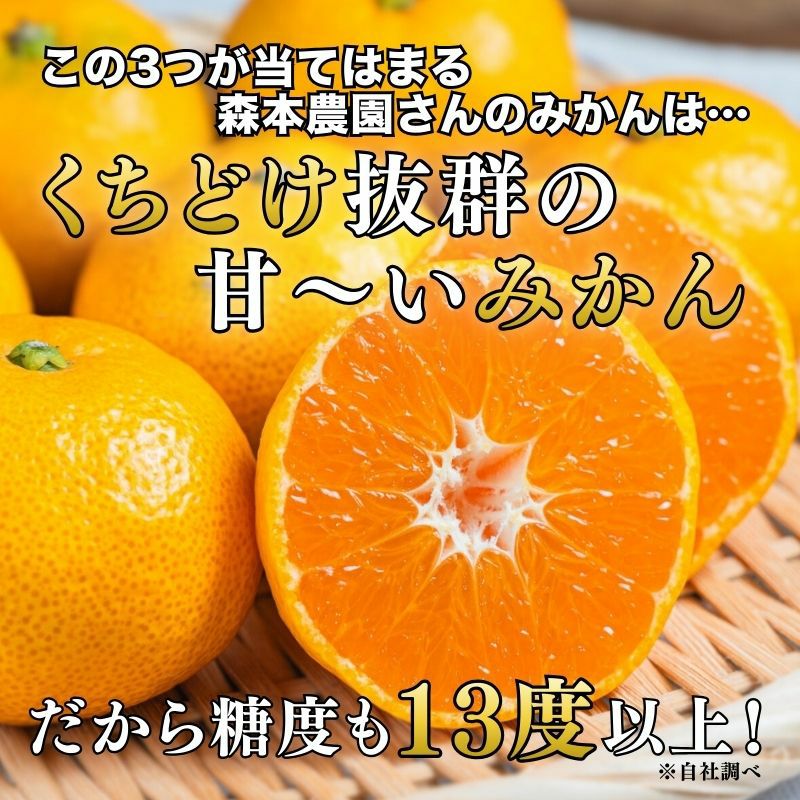 歴史ある森本農園さんが丹精込めて育てた、糖度13度以上(※自社調べ)の贅沢みかん。手でむける手軽さと本格的な甘さで、ご自宅用にも冬ギフトにも喜ばれる一品です。