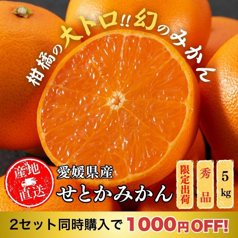 他の画像を見る 愛媛県産 せとか みかん 5kg 秀品 L~3Lサイズ(約16~27玉) 送料込み 産地直送品 常温 2セットで1000円OFF ¥ 7,280 税込 販売期間 2026/01/09 10:00 〜 2026/03/22 23:59 カートに入れる お気に入りに登録する