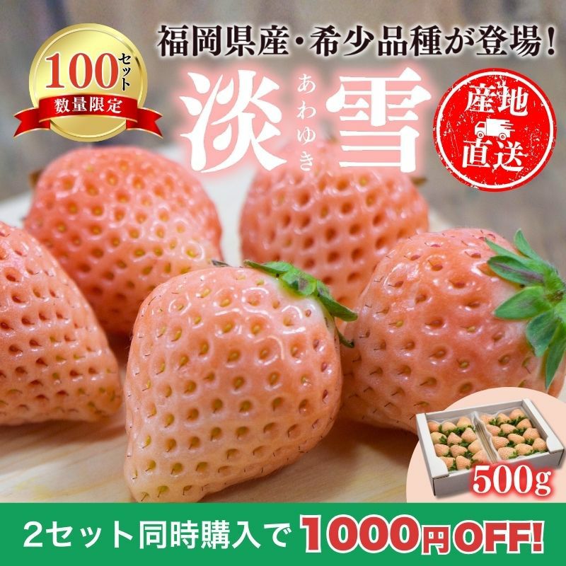 他の画像を見る 【限定100セット】福岡県産 白いちご「淡雪」 500g前後(250g前後×2パック) 平箱仕立て 送料込み 産地直送品 2セットで1000円OFF クール便(冷蔵) ¥ 6,980 税込 販売開始前です。 販売期間 2026/01/16 10:00 〜 2026/03/08 23:59 詳細を見る お気に入りに登録する