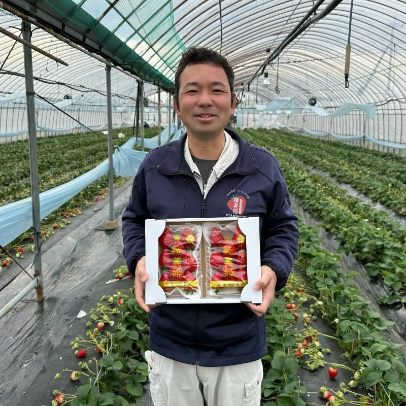 6年以上の歳月をかけて生まれた“特別ないちご”。甘み・酸味・香り、そのすべてが高い次元で調和した希少品種「綾美姫」を、贈答にも映える平詰め仕様でお届けします。