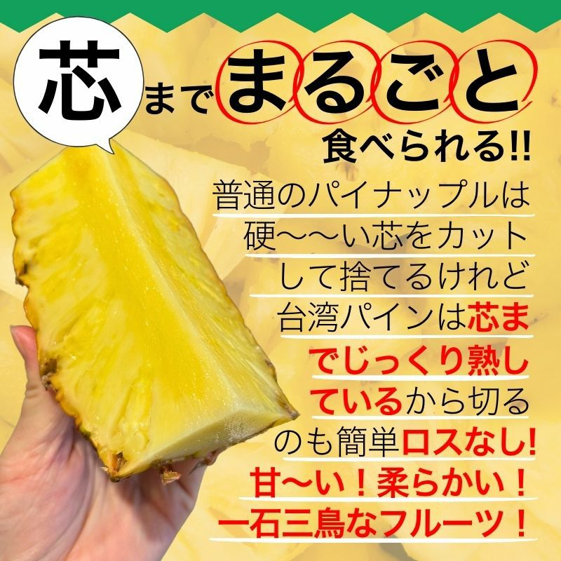 ご注文後、台湾の産地より日本へ船便で輸入し、順次出荷いたします。ご注文から出荷までに1~3週間ほどお時間を頂戴いたします。(収穫・輸送・受注状況により変動します) また、天候や海上輸送の影響により、お届けが前後する場合がございます。あらかじめご了承ください。