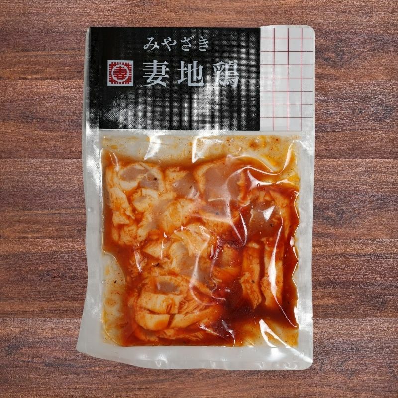 鶏肉(宮崎県産)、醤油(国内製造)、ごま油、砂糖、米発酵調味料、おろしにんにく、水飴、コチュジャン、植物油、唐辛子、豆板醤、XO醤、いりごま、野菜エキス、ねぎペースト、酵母エキス、コショウ、寒天/増粘剤(加工デンフン、キサンタン)、調味料(アミノ酸等)、パフリカ色素、酸化防止剤(V.C)、ベニコウジ色素、香料、(一部にえび・小麦・鶏肉・ごま・大豆を含む)
