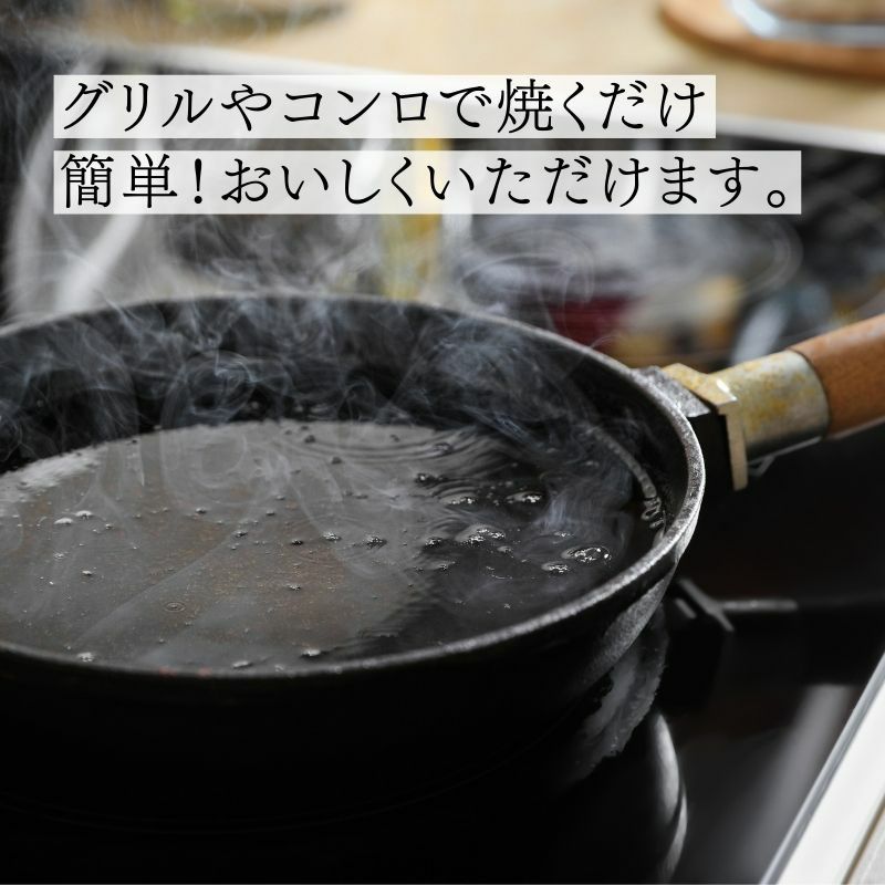 焼き上げると醤油を弾くほど脂のりが抜群で、ふっくらと厚みのある身はジューシーで食感がたまりません。無添加にこだわり、素材そのものの自然なおいしさをじっくり引き出しています。塩加減も絶妙で、焼くだけでごはんのおかずとしても、お酒のお供としても最高の逸品です。