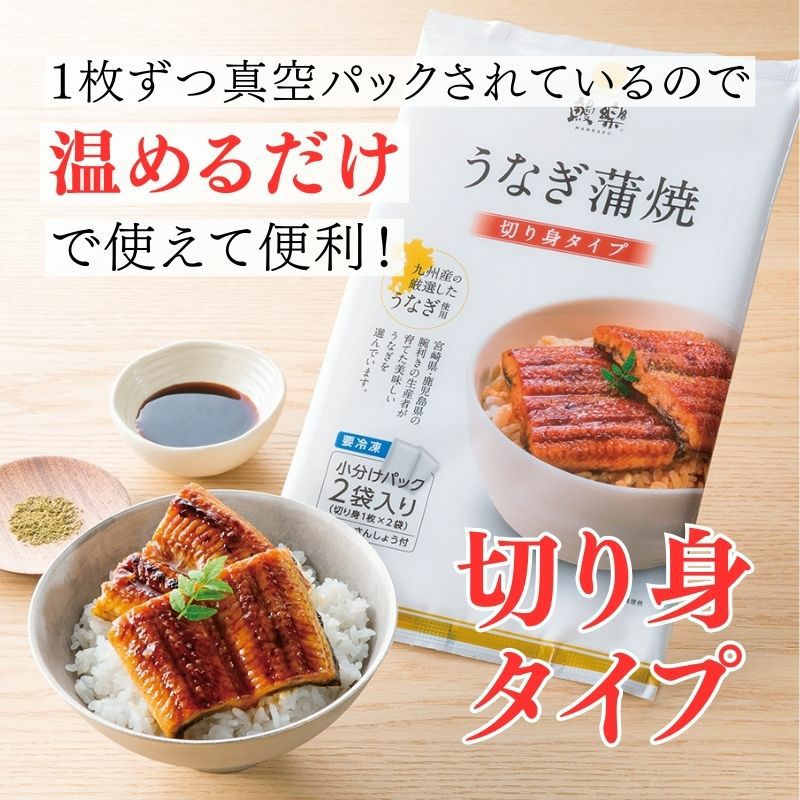 「鰻楽」のうなぎ蒲焼き【切り身】2枚入パック 計100g 九州産