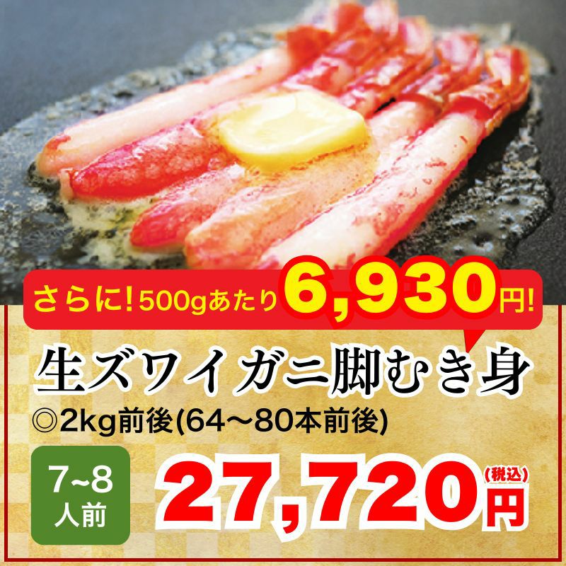 他の画像を見る 本ズワイガニ脚 生 しゃぶしゃぶ用 ポーション むき身 500g(16~20本) 送料込み 1点追加ごとに1000円OFF! クール便(冷凍) ¥ 7,680 税込 カートに入れる お気に入りに登録する