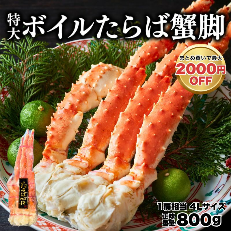 他の画像を見る ボイルタラバガニ脚シュリンク 4Lサイズ 1kg前後(解凍後約800g) 1肩相当 ロシア産 北海道加工 送料込み 1点追加ごとに1000円OFF! クール便(冷凍) ¥ 10,980 税込 カートに入れる お気に入りに登録する