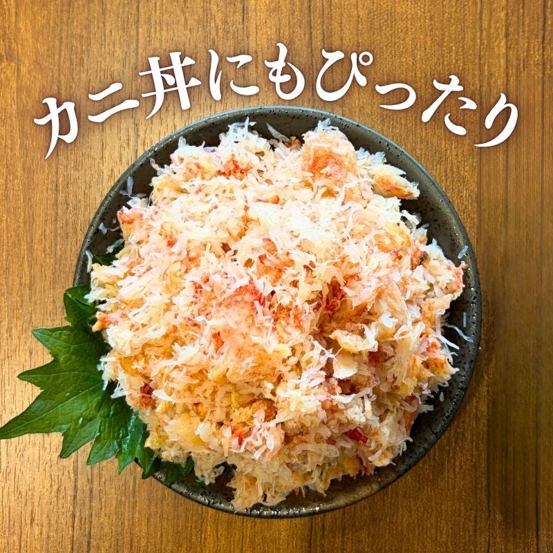 原料を北海道で丁寧に加工し、使いやすいほぐし身に仕上げました。かに丼や海鮮丼、手巻き寿司の具にはもちろん、ちらし寿司やサラダなどにも使いやすく、手軽に食卓へごちそう感を添えてくれます。
