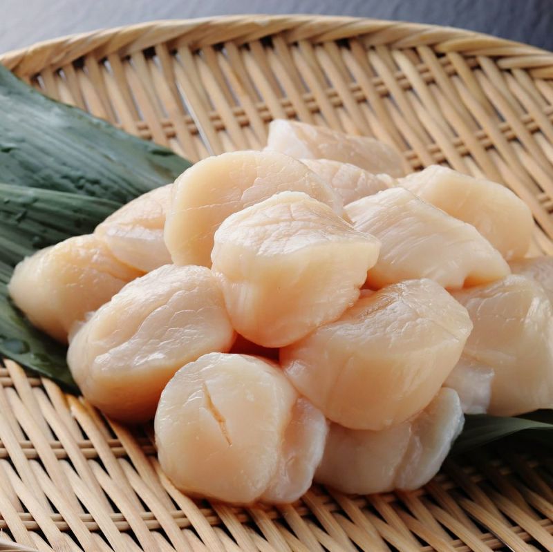 北海道産の活ホタテを原料に使用。直径3cm~4.5cmの4Sサイズで、約24~30玉入り。お刺身で食べるのに最適な、高品質の貝柱です。