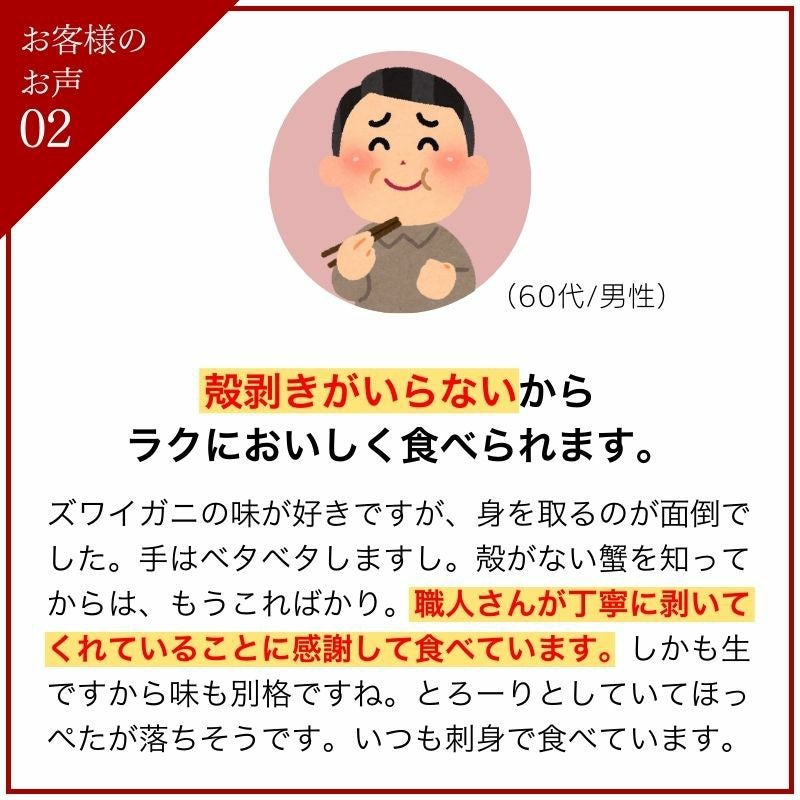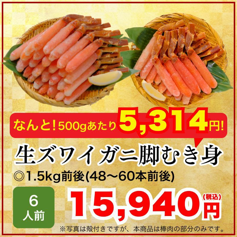 他の画像を見る 訳あり 生冷凍ズワイガニ むき身 棒肉 ポーション 殻なし 500g(16~20本前後)加熱用 ロシア産 北海道加工 送料込み クール便(冷凍) ¥ 5,980 税込 販売を終了しました。 詳細を見る お気に入りに登録する