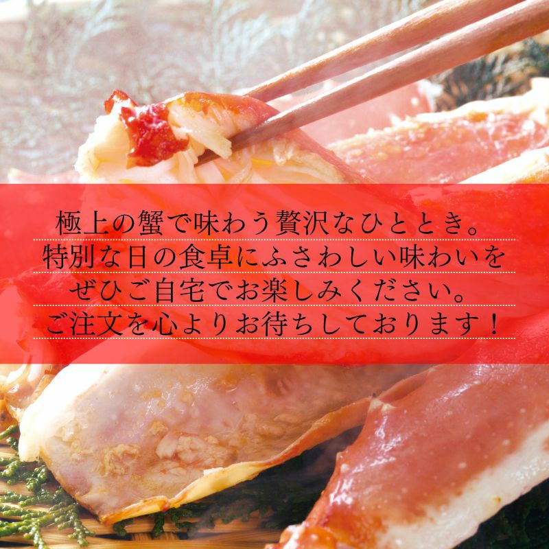 内容量ずわい蟹脚1kg前後/解凍後約800g、たらば蟹脚総重量800g前後/解凍後約600g/1肩相当