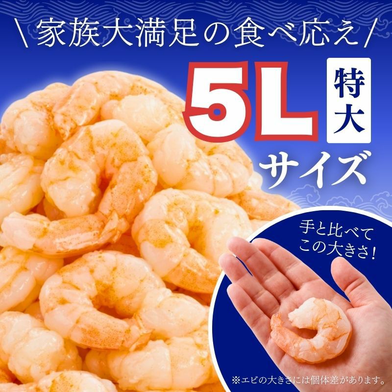 【まとめ買い割引】下処理いらず!特大むきえび 5Lサイズ 850g(解凍後750g)背ワタ無し 北海道加工 バナメイエビ
