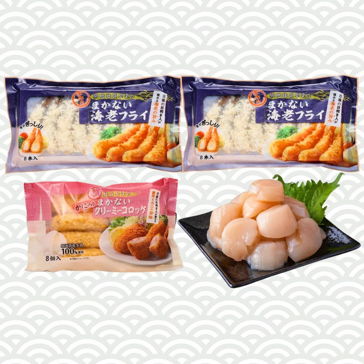 北海道産ホタテ&築地まかない2種セット(エビフライ・クリーミーコロッケ)