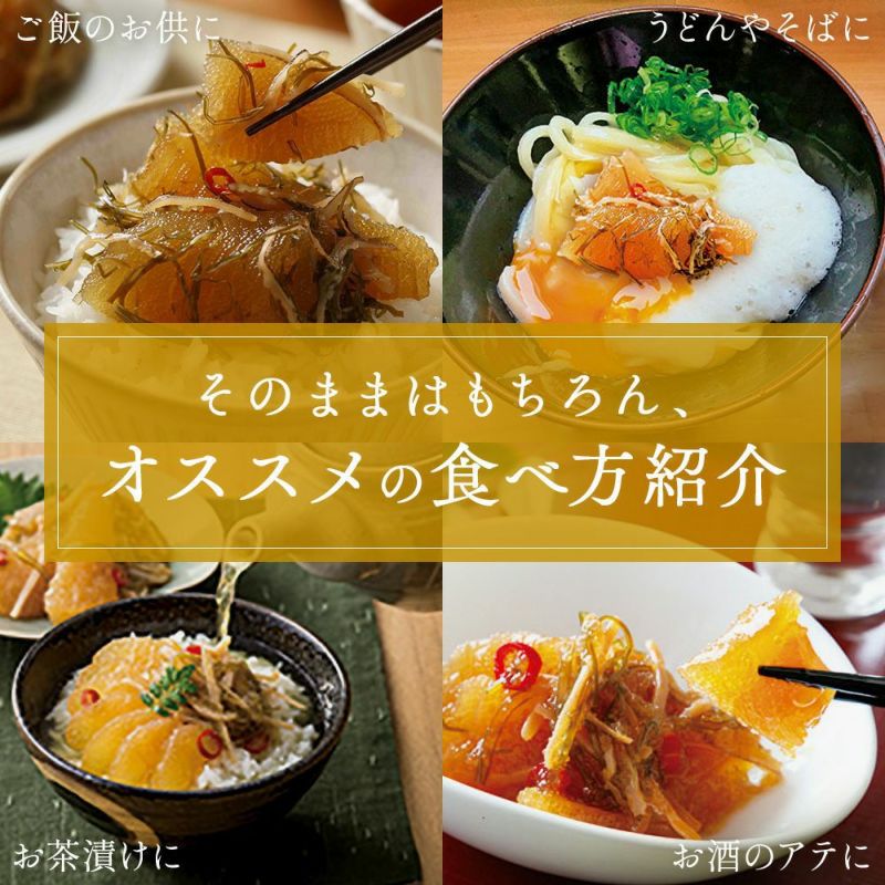 北海道産の高級昆布を使用し、じっくり漬け込むことで深みのある味わいに。噛むほどに広がる旨味が、ご飯にもお酒にもぴったりです。