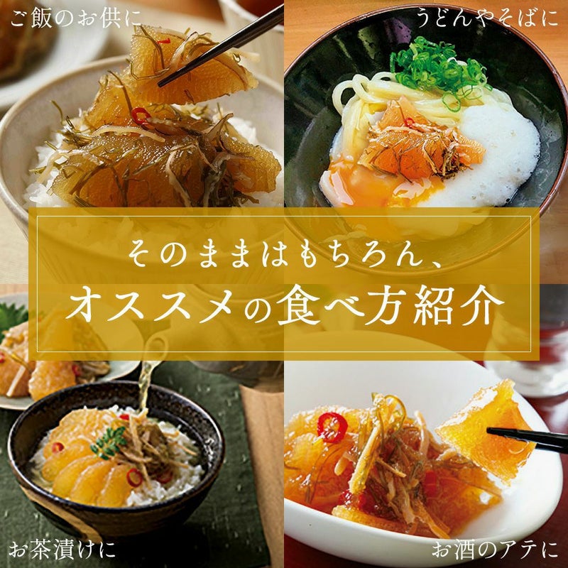 北海道産の高級昆布を使用し、じっくり漬け込むことで深みのある味わいに。噛むほどに広がる旨味が、ご飯にもお酒にもぴったりです。