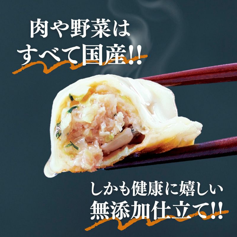 【王道餃子】 【具】野菜(キャベツ(国産)、ニラ、にんにく、生姜)、豚肉(国産)、醤油、本みりん、ごま油、食塩、チキン&ポークエキス、酵母エキス、香辛料 【皮】小麦粉(国内製造)、乳化油脂、食塩/酒精、乳化剤 (一部に小麦・豚肉・ごま・鶏肉・大豆を含む) 【レモン餃子】 【具】野菜(キャベツ(国産)、レモン、青ねぎ)、豚肉(国産)、醤油、ごま油、本みりん、食塩、酵母エキス、砂糖、香辛料 【皮】小麦粉(国内製造)、乳化油脂、ウコン、食塩/酒精、乳化剤 (一部に小麦・豚肉・ごま・大豆を含む) 【しそ丸ごと餃子】 【具】野菜(キャベツ(国産)、大葉)、豚肉(国産)、醤油、ごま油、食塩、本みりん、酵母エキス、チキン&ポークエキス、香辛料 【皮】小麦粉(国内製造)、青じそペースト、乳化油脂、食塩/酒精、乳化剤 (一部に小麦・豚肉・ごま・鶏肉・大豆を含む) 【ごま団子】 生あん(国内製造(特別栽培小豆(国産))、砂糖、食塩)、白玉粉、砂糖、ごま、小麦でん粉、ラード (一部に小麦・ごま・豚肉を含む)