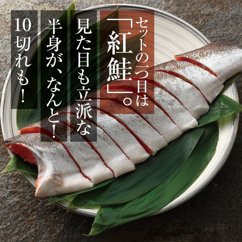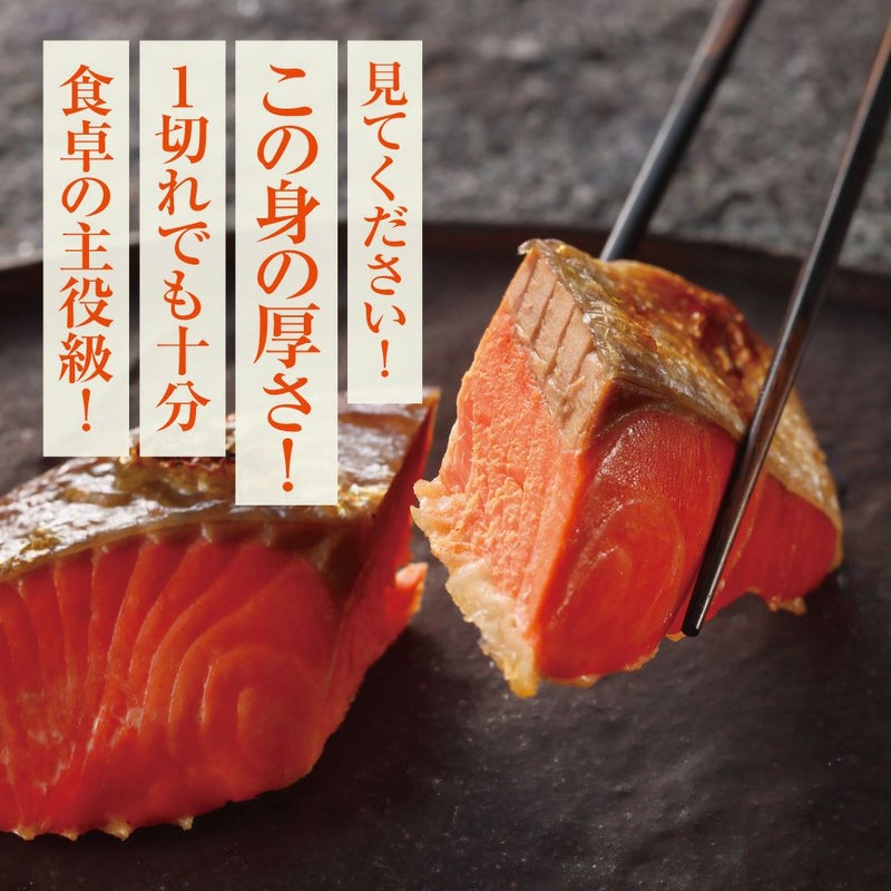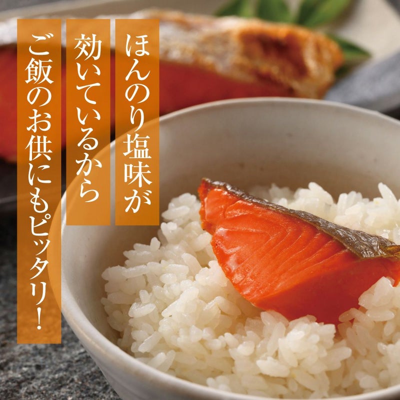 天然紅鮭の中でも特に脂がしっかり乗ったものを厳選。焼けば香ばしい香りが広がり、しっとりとした身質が楽しめます。