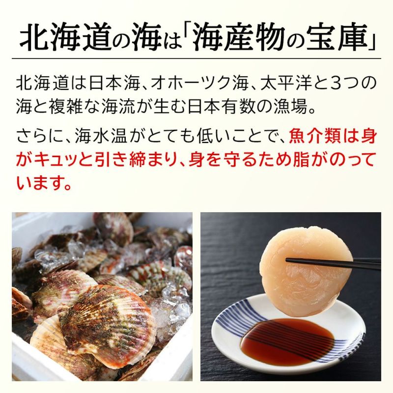 豊かな海の恵を存分に受けて育った北海道産ホタテは、身が大きく肉厚でぷりっぷり!栄養満点で濃厚な旨みがギュッと詰まっています。