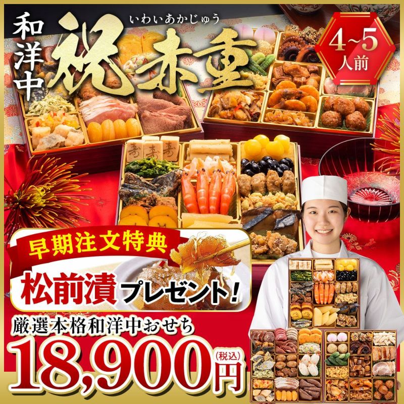 ◆博多久松3段重おせち「祝赤重」 全48品/1個