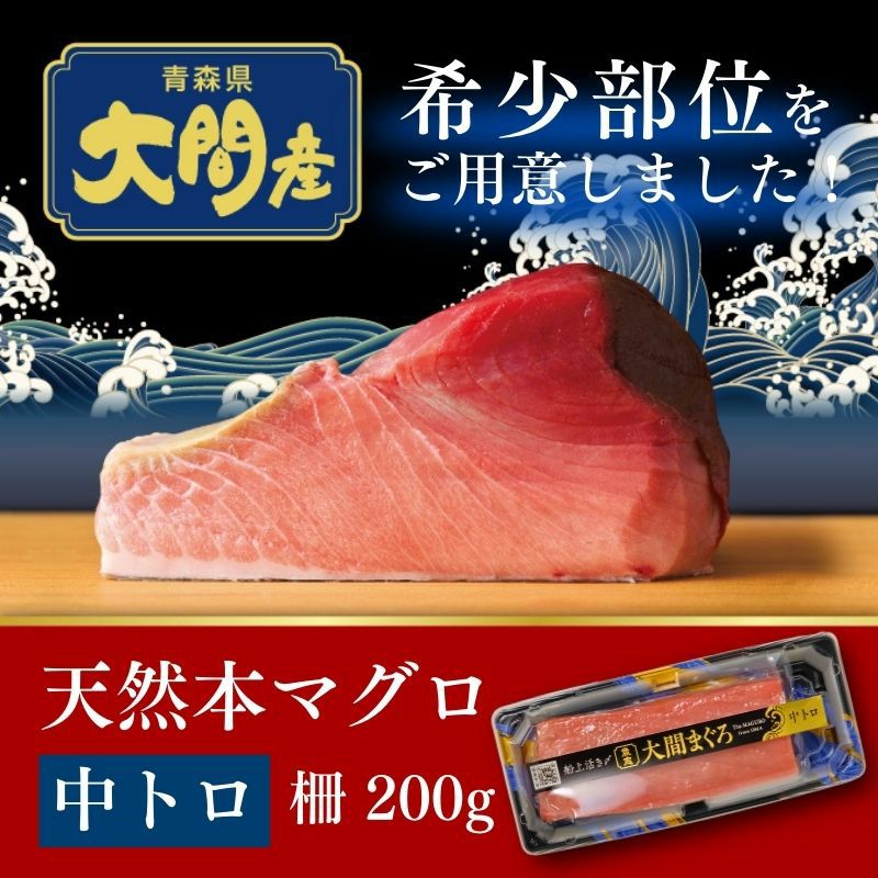 青森県大間産 天然本マグロ(クロマグロ)中トロ 1柵200g