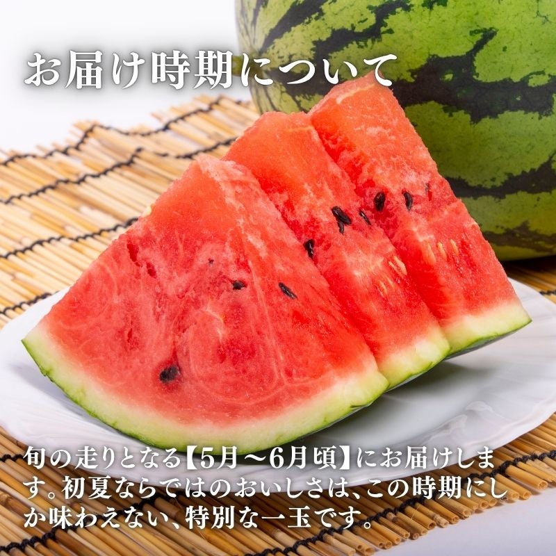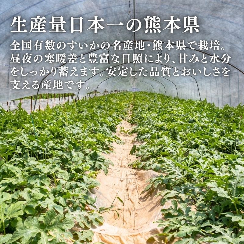 熊本の恵まれた気候で育った大玉すいか。シャリっと心地よい食感とたっぷりの果汁、濃厚な甘みを楽しめる、夏を代表するごちそうです。