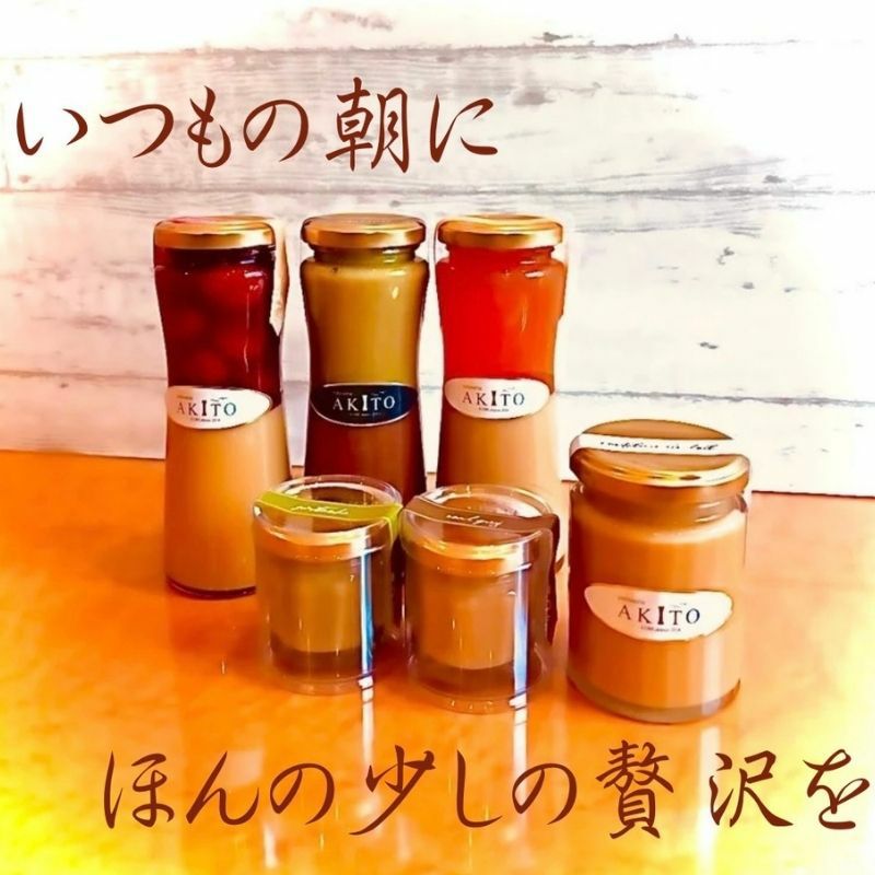 洋菓子の街、神戸元町に店を構えるpatisserie AKITOの代名詞ミルクジャム。こちらを使用した2層ジャムは、上層、下層、最後は2層一緒に、1瓶で3度美味しいお得感満載の商品です。専用スプーンと人気No.1~3のミルクジャムも別瓶でお付けしています。