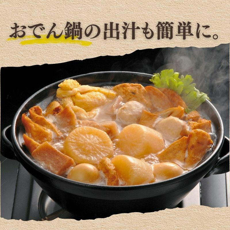 だしに求める味わいをバランスよくまとめ、毎日の味噌汁から煮物、麺つゆまで幅広く活躍。ひと手間かけたような“だし感”へ導きます。
