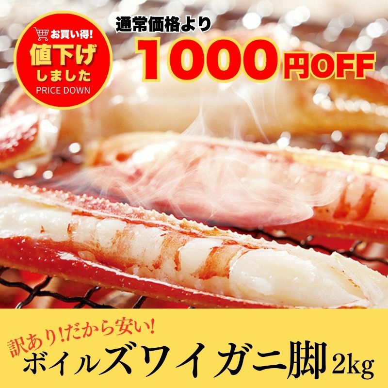 〈1000円OFF〉訳ありズワイガニ脚(折れ脚・端材) ボイル 2kg(1kg×2袋)