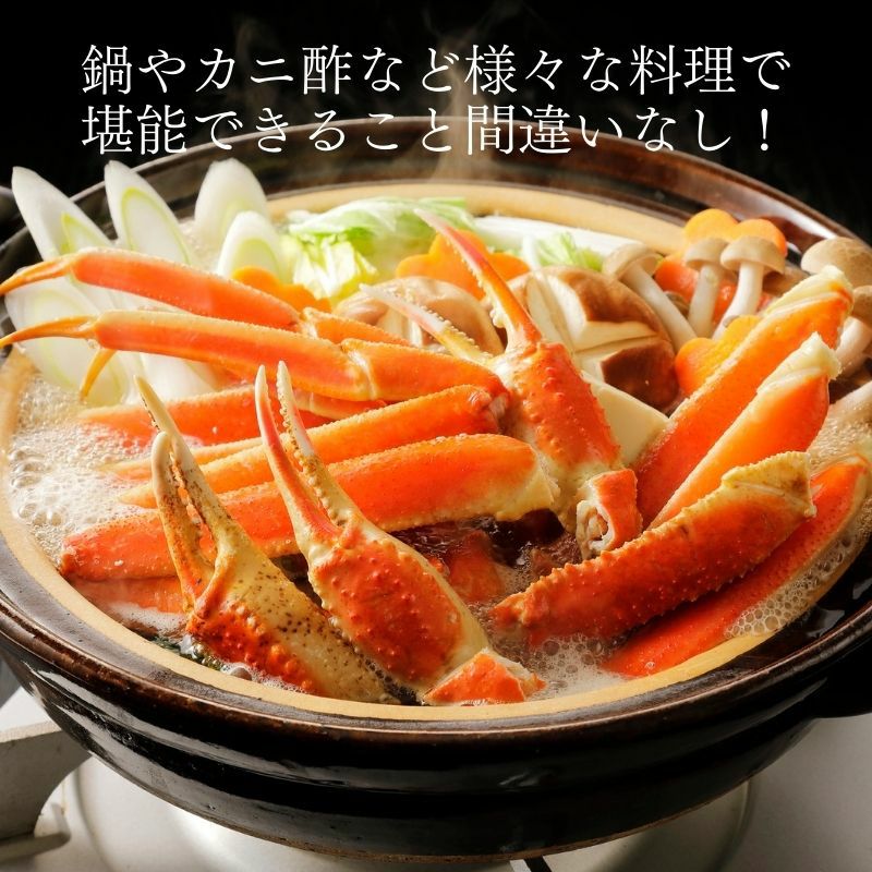 ズワイガニの甘みとプリプリの食感を、鍋やカニ酢など様々な料理で堪能。画像は一例であり、パックごとに内容のばらつきがありますのでご了承ください。