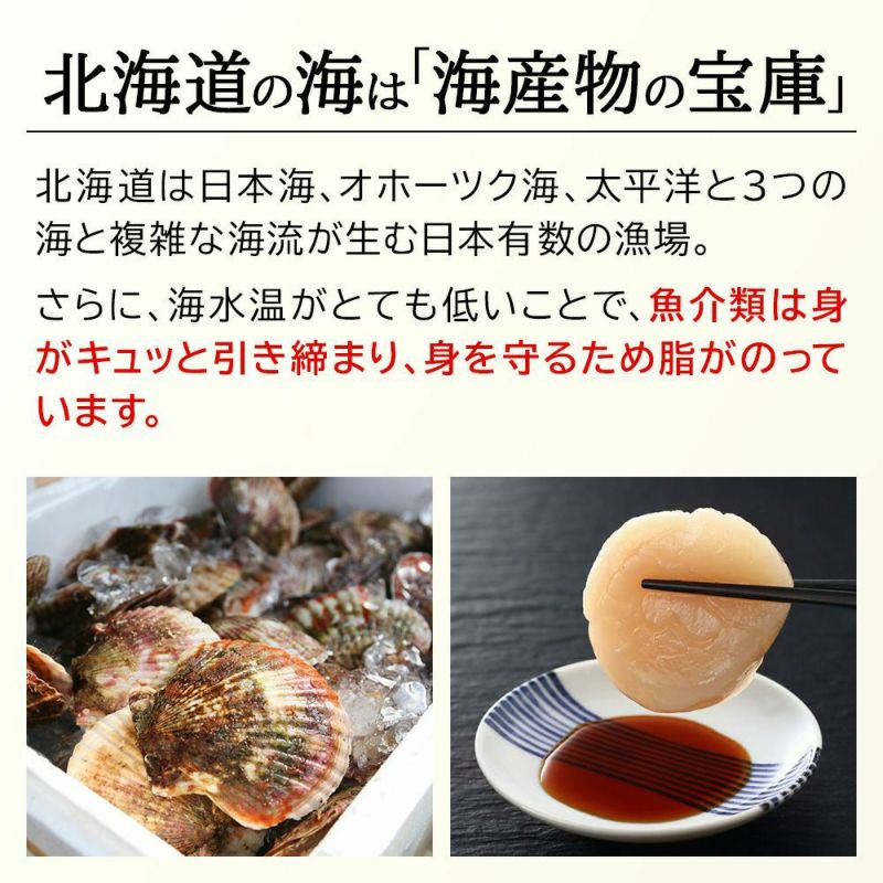 豊かな海の恵を存分に受けて育った北海道産ホタテは、栄養満点で濃厚な旨みがギュッと詰まっています。満足すること間違いなしの美味!