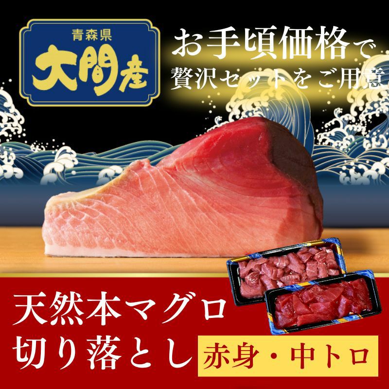 青森県大間産 天然本マグロ(クロマグロ)赤身・中トロ 切り落としセット 各200g 計400g