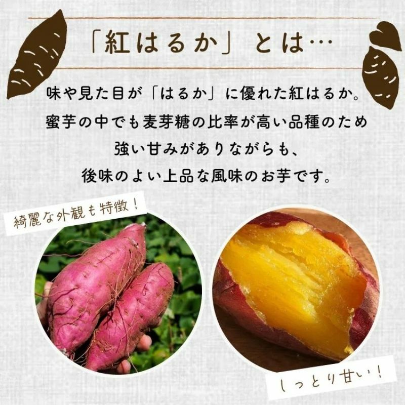 「はるか」に優れた味わいを持つ紅はるか。上品な甘さと豊かな風味を持ち、安納芋よりもバランスの取れた濃厚な味わいを楽しめます。