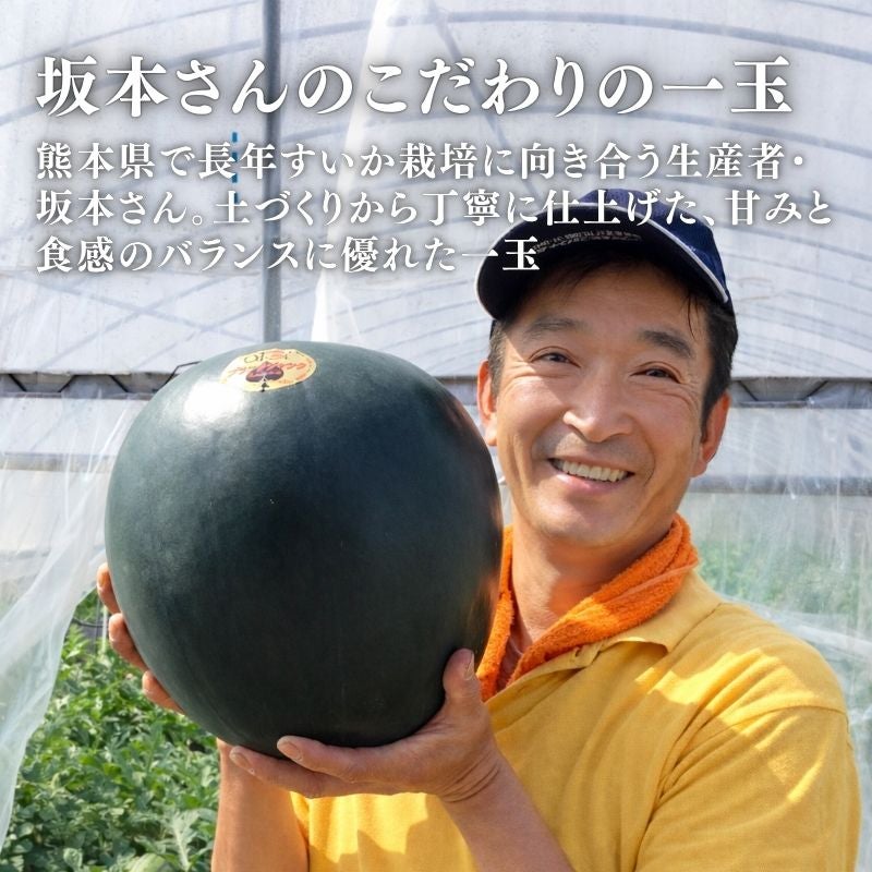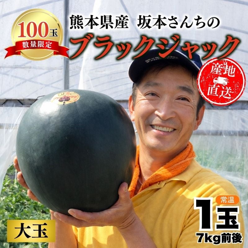他の画像を見る 【限定100玉】 熊本県産 坂本さんちの黒皮すいか 「ブラックジャック」 1玉 7kg前後 2L~3Lサイズ 味咲農園 送料込み 産地直送品 常温 ¥ 6,980 税込 販売期間 2026/04/03 10:00 〜 2026/05/17 23:59 カートに入れる お気に入りに登録する