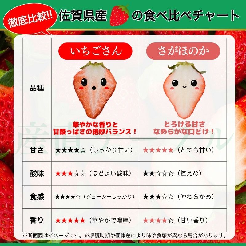他の画像を見る スーパーにはない9割熟成の甘さ! 佐賀県産 いちごさん&さがほのか 食べ比べセット Lサイズ 2パック 計500g前後 ゆりかーご使用 送料込み 産地直送品 クール便(冷蔵) ¥ 4,480 税込 販売を終了しました。 詳細を見る お気に入りに登録する